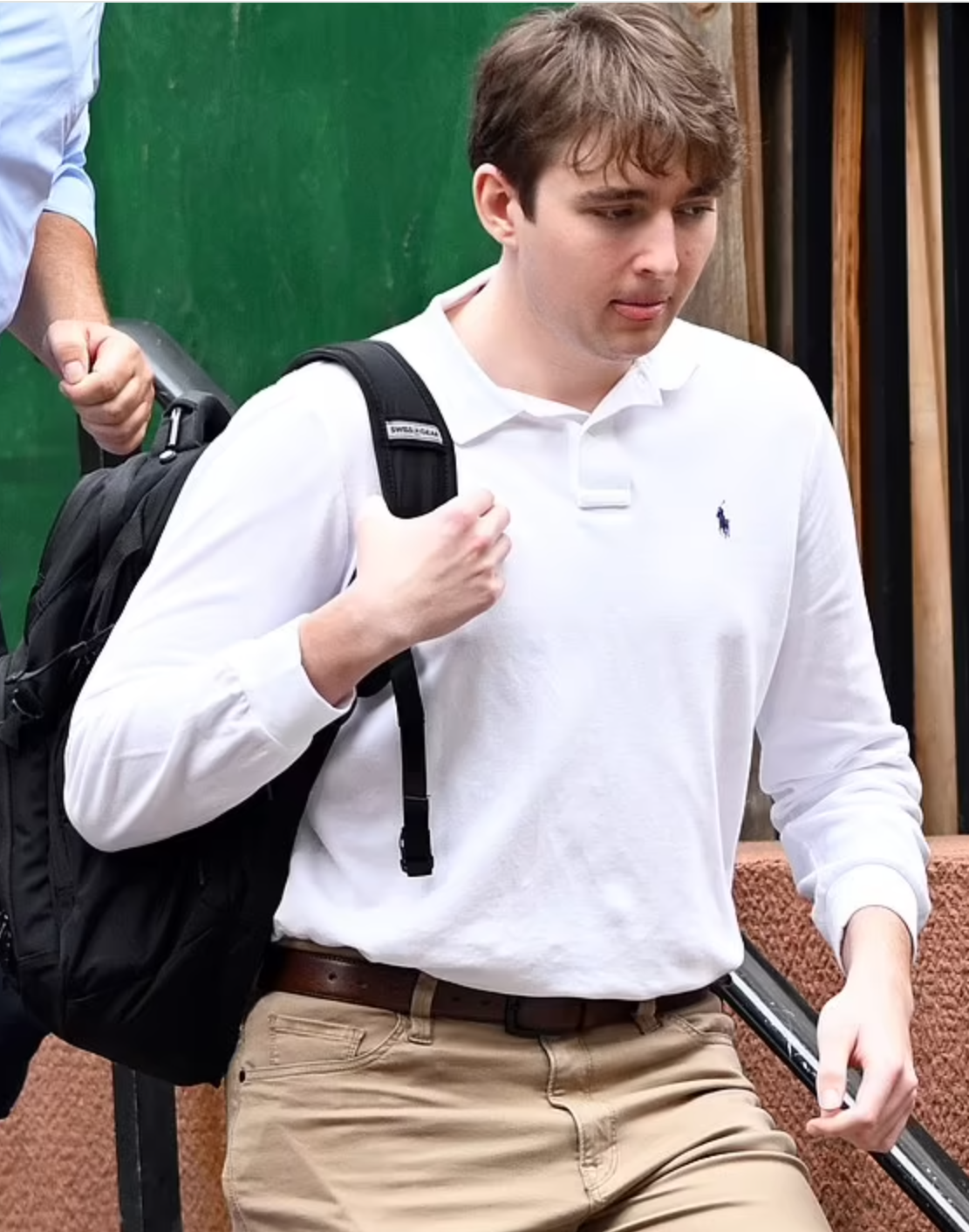 As he exited the NYU campus on Tuesday, Barron Trump revealed a more relaxed and functional sense of style, opting for classic khakis paired with a white polo shirt. According to reports, security personnel intervened to prevent him from sharing his phone number with girls.