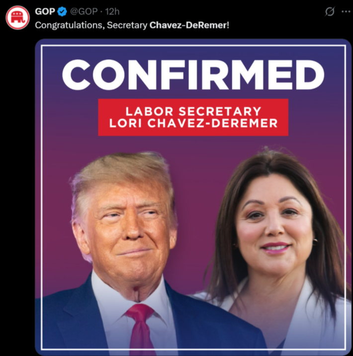 Chavez-DeRemer Confirmed As Trump’s Labor Chief With Dem Support
